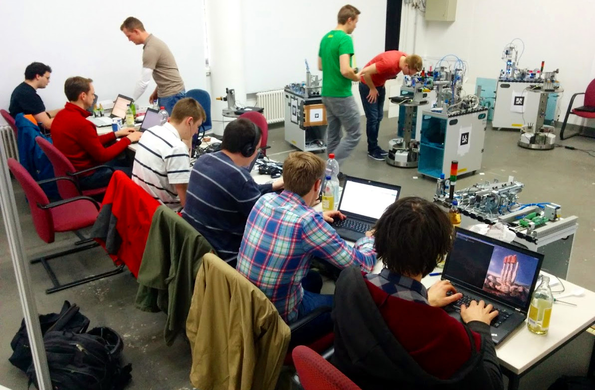 Each day will roughly be structured as follows: morning lectures will present in-depth interactive tutorials on aforementioned topics, while afternoon sessions will be focused on implementations, and will take place in a collaborative environment. We will provide notebooks running the simulation and development environment. Festo will provide a partial RCLL field based on real machines for testing on real hardware.
